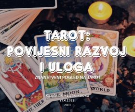 Voliš umjetnost, mistiku, okultno? Ili preferiraš psihologiju, ilustraciju, kartaške igre..? Student si povijesti umjetnosti ili UMASa i želiš malo drugačije iskustvo predavanja? Misliš da je tarot nekakva okultna praksa za vještice i čudake? Želiš naučiti nešto o povijesti? Ili se samo dobro zabaviti? Ako te išta od ovoga opisuje, pridruži se na seriji besplatnih predavanja i vježbi Tarota!